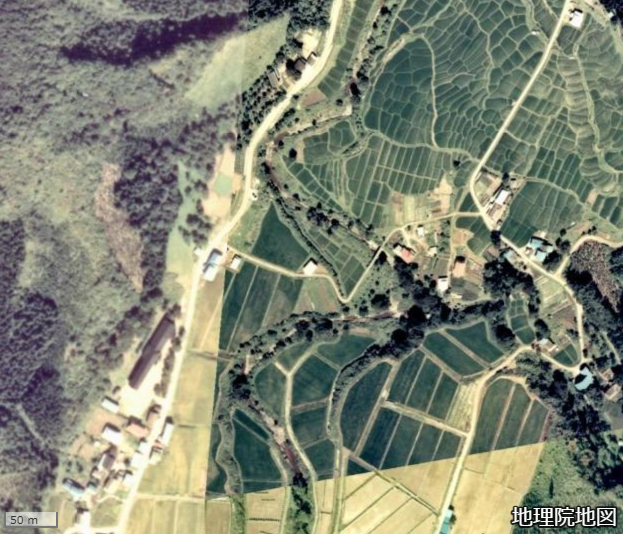 ちなみに南東に見えるのは飯沢小学校の旧校舎だろうか。現在は画像北東部にあり、移動していることがわかる。