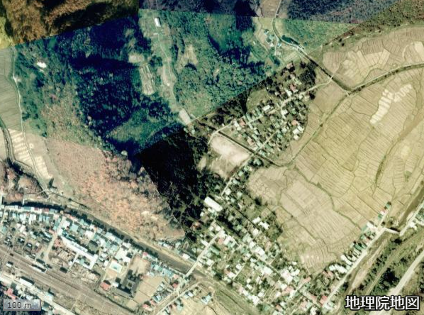 1970年代の地図ではまだ建設中で、左下にある建物が旧尋常小学校となっている。