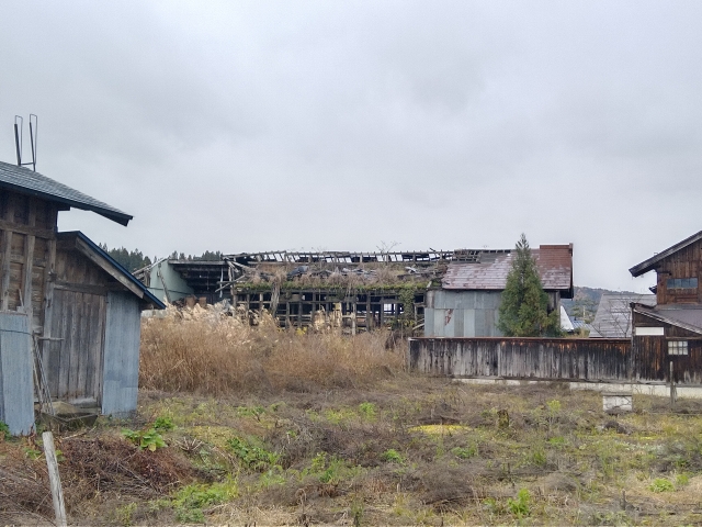 秋田県湯沢市山田川原にある廃酒造店。2015年の閉業以降放置されており、ここ数年の大雪で腐敗が急速に進行している。